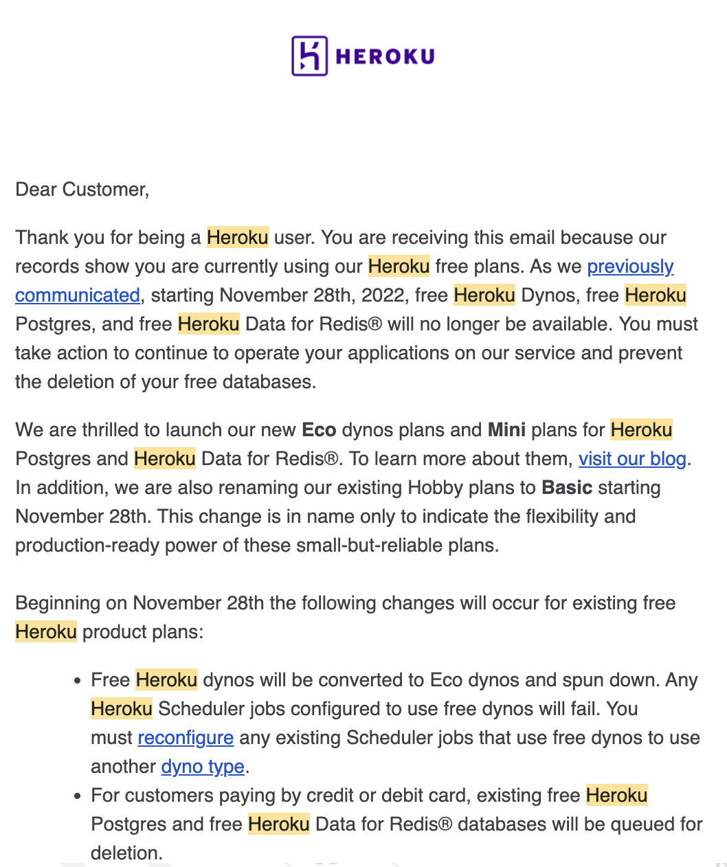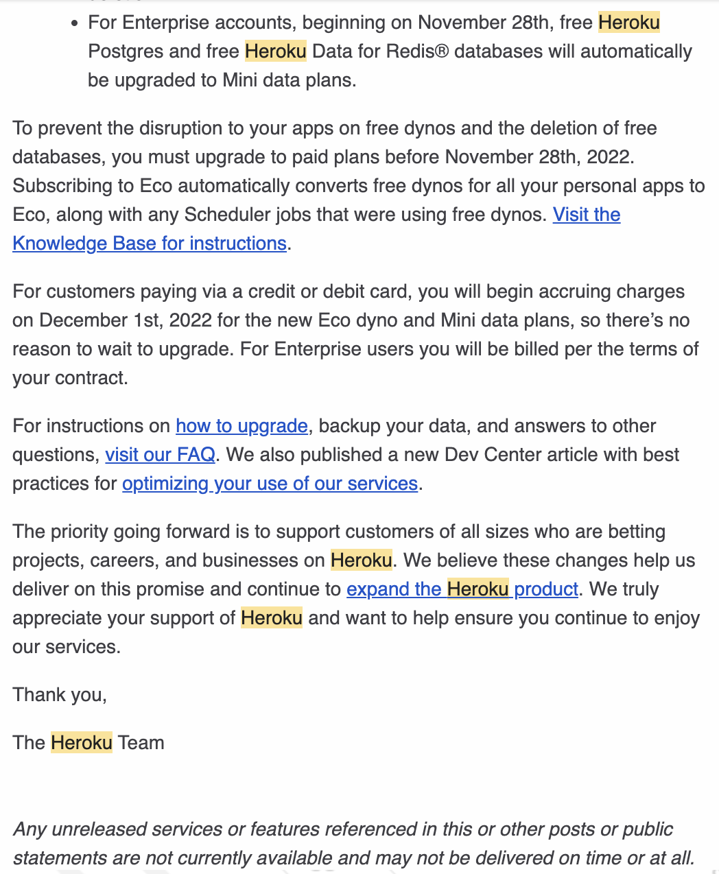 Letter Notification to end Heroku free plans - Part 2